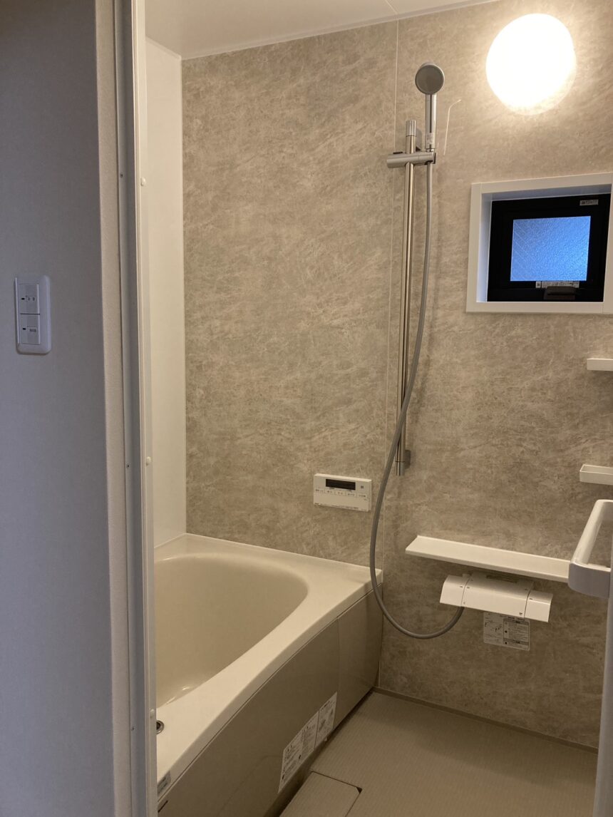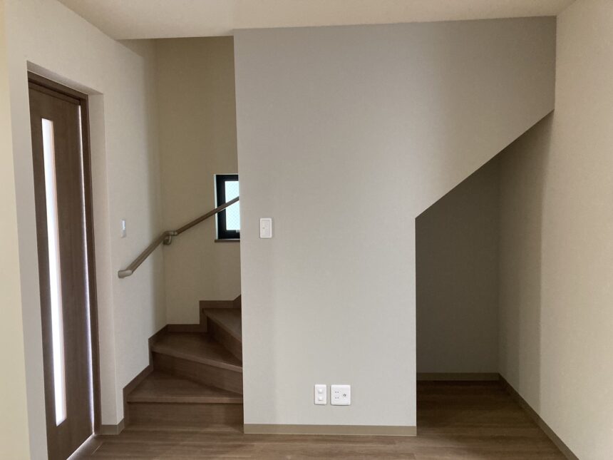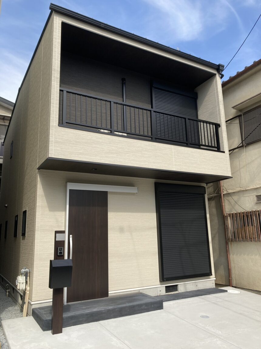 ベージュを基調とした外観にアクセントの黒が映える、どこか和の趣も感じられる落ち着いた佇まいです。 内部も茶色と白を基調とし、統一感のある穏やかな雰囲気に仕上げています。 ポーチ土間の墨モルタルが空間に味わい深い風合いを添えています。